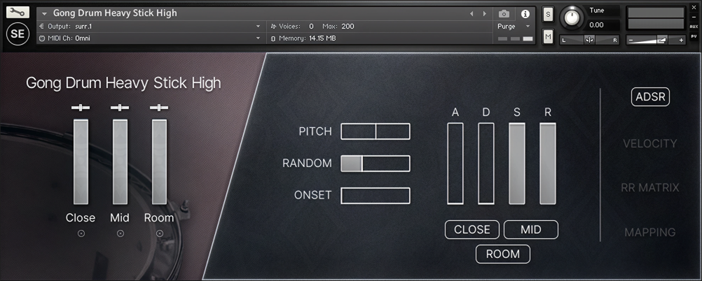 Everything has been recorded in a large hall, that is accentuated in the ROOM mics, with the MID mic being more of a standard mix.