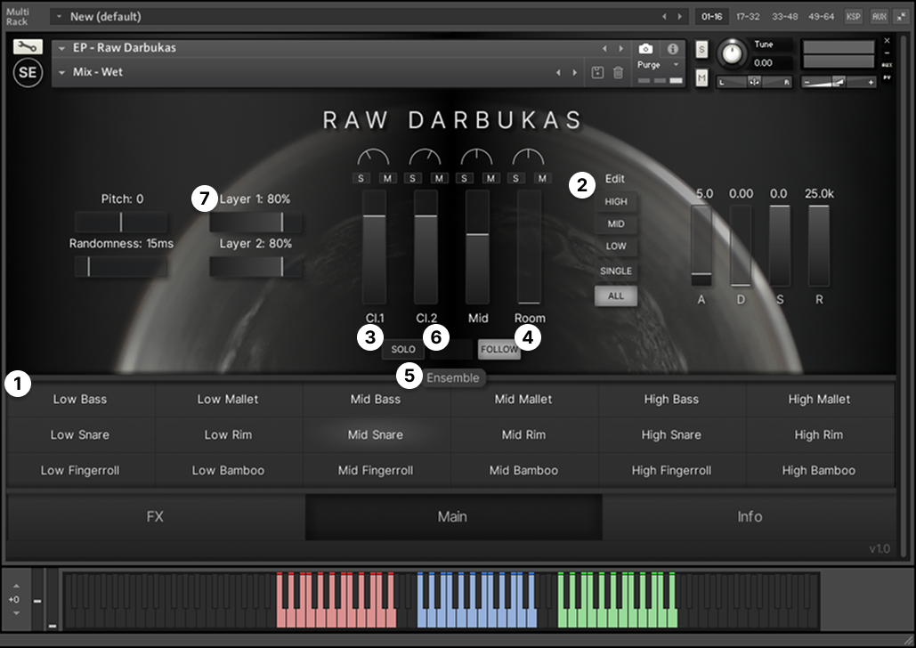 Raw Darbukas — Layered Darbukas, sampled in three tunings with extended articulations.